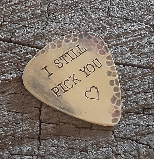 Brass Guitar pick - Anniversary pick - distressed guitar pick - rustic patina
