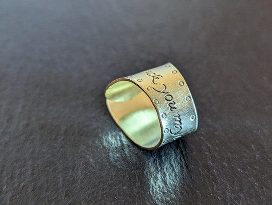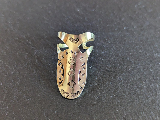 Brass finger pick with hand stamped pattern for banjo or ukulele or finger picking style playing