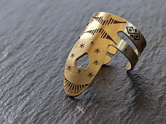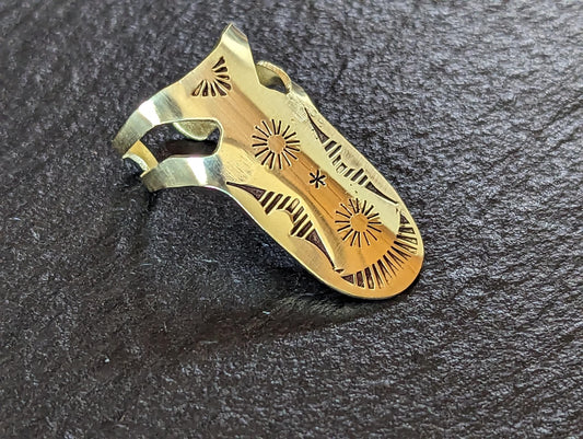 Brass finger pick with southwestern pattern handmade and playable - NicisPicks