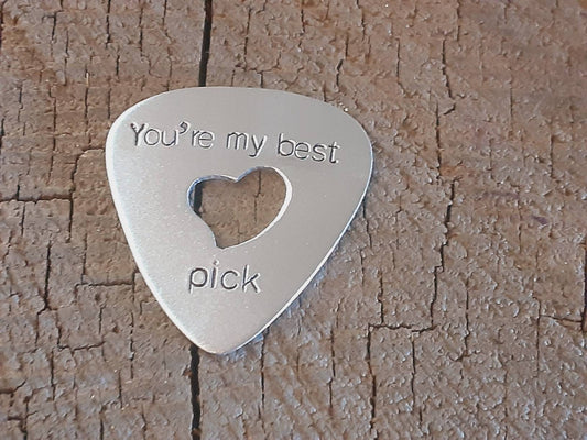 Aluminum guitar pick - playable with heart cut out to improve grip