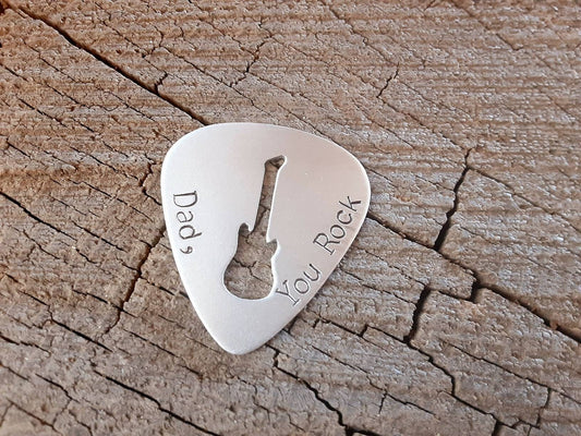 Aluminum guitar pick - playable for dad with guitar cut out - fathers day gift