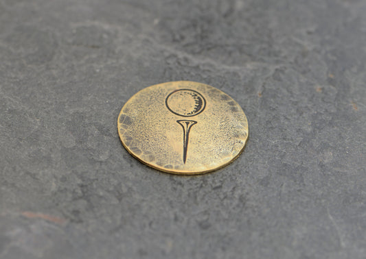 Brass Golf Marker with Golf Ball on Tee in Rustic Finish