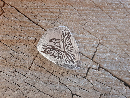 Aluminum guitar pick with Phoenix design