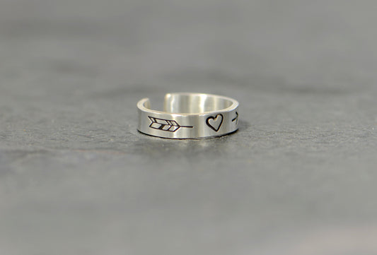 Arrow and heart sterling silver toe ring